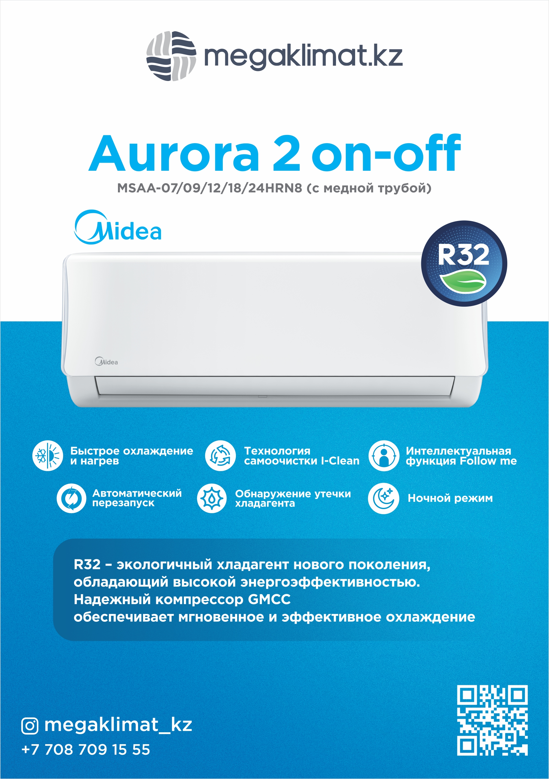 Представляем вам Midea AURORA 2 MSAA-30HRN8 — сплит-систему, которая обеспечит комфортный климат в вашем доме или офисе. С её помощью вы сможете легко поддерживать оптимальную температуру в помещениях площадью до 27 кв.м.